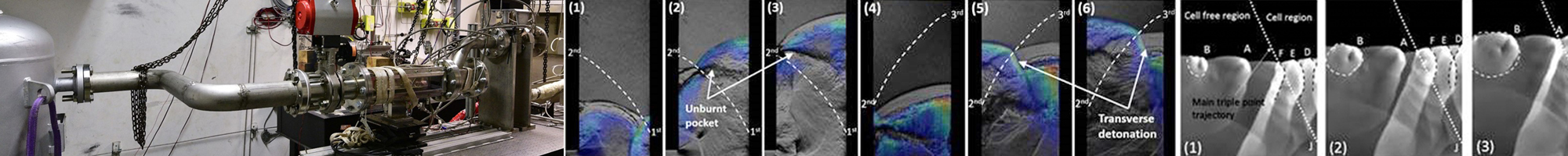 The Propulsion Group performs fundamental research on various enabling technologies for a variety of aerospace propulsion applications. One major theme of our research involves the study of detonation combustion and the underlying physical mechanisms, with the objective of applying detonation combustion to improve thermodynamic efficiency and performance. In addition, the group also performs extensive research on piston engines and the use of detonation or pressure gain combustion for power generation. We have employed and developed a wide range of diagnostics capabilities for experimental combustion and reacting gas dynamics research, such as Schlieren imaging, Planar laser-induced fluorescence (PLIF), Tunable diode laser absorption spectroscopy (TDLAS) and Particle Image Velocimetry (PIV). Our experimental research work is complemented by extensive high-fidelity numerical simulations.