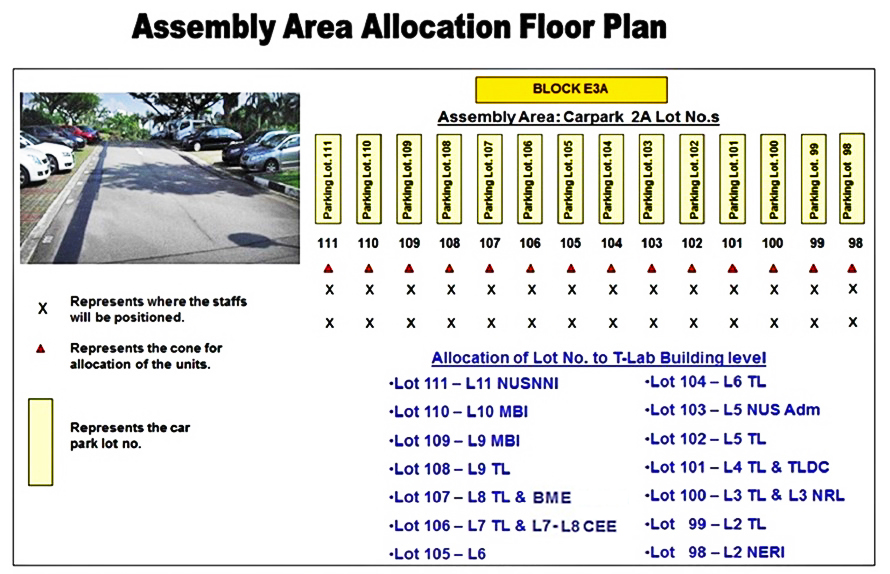 Location of T-lab Building: Assembly area in the event of fire, fire drill or emergency. Report to your unit fire warden.